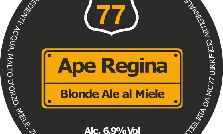 Figura tra le referenze storiche della gamma MC 77 (Serrapetrona, Macerata), questa Ape Regina: il cui nome inequivocabilmente evoca – e la supposizione è giusta – l’idea di una birra al miele. In particolare si tratta di una base Belgian Blond Ale (la gradazione sul 6.9%), alla cui ricetta si aggiunge miele di acacia, con metodo di lavorazione che tutela, in primis, la pulizia biologica del prodotto.