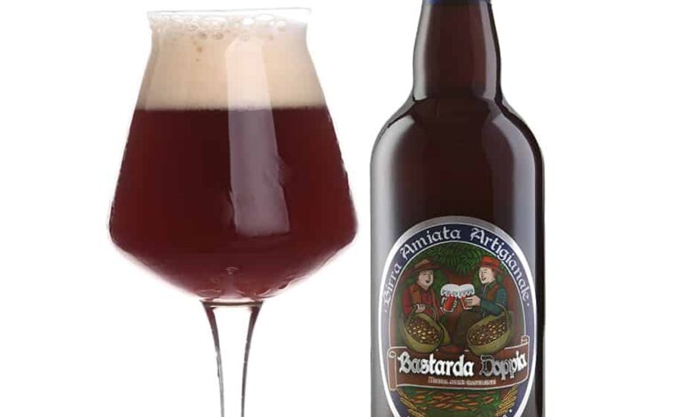 In principio fu la Bastarda Rossa, cavallo di battaglia fin dagli esordi dei fratelli Claudio e Gennaro Cerullo, imperniata sul DNA dell’omonima castagna Igp dei loro boschi amiatini (essiccata al fuoco di legna, trebbiata, ossia ripulita della buccia, e poi macinata). Rispetto alla sorella primogenita con la Bastarda Doppia raddoppia la quantità del frutto-cardine (dal 20 al 40% sul totale della massa fermentabile) e intensifica l’impeto alcolico, portando l’asticella da 6.5° a 8.5° alc. Ne discende una birra dalle autunnali nuances ambrate, avvolta da schiuma salda e ben bilanciata: non imbrigliata in monotematici tratti “caldarrosta”, ma cangiante con accenni di miele e frutta disidratata, già al naso e poi anche al palato, dove circola con corsa gustativa serrata e intessuta di sensazioni maltate fino a un conclusivo colpo d’ala di timbro tostato.