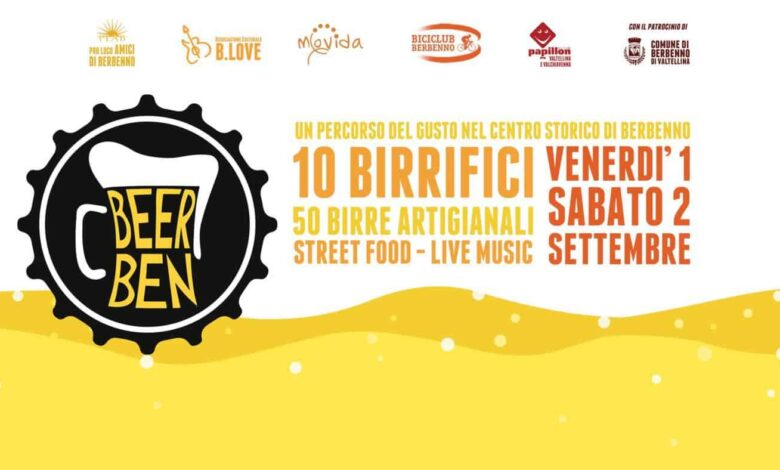 Venerdì 1 e sabato 2 settembre prende il via in Valtellina Beerben 2017, un percorso del gusto nel centro storico di Berbenno. Saranno 10 birrifici artigianali coinvolti più due beer firm, con 50 birre diverse da degustare durante l’evento: Birrificio Beer In, Birra Eretica, Birra Carrù, Dulac, Birrificio Legnone, Lmb La Mia Birra Birra Di Valsassina, Lord Chambray, Birrificio Pintalpina, Birrificio Revertis, Le birre del Tasso Alcolico, Birra Salvadega, Tilium Beer.