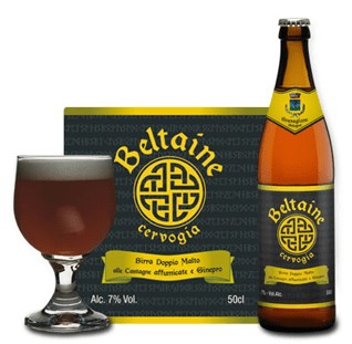 Per assaggiarla non devo far altro che varcare un traforo e dalle lande del pistoiese trasferirmi sulla collina bolognese, precisamente presso il comune di Granaglione, terra di confine delle installazioni celtiche. Questa birra, Bevanda tipica dei Celti, veniva chiamata in gaelico “Cervogia”, mentre Beltaine era la grande “Festa di Primavera” e il simbolo della rinascita della natura, indentificato nel Nodo dell’Amante riportato sull’etichetta della Cervogia che da questa festa prende il nome. La birra è il frutto di una ricerca per ottenere un prodotto che identifichi il terroir e per enfatizzarlo oltre alle castagne, a seconda della ricetta, sono stati introdotte altre materie prime autoctone come – nel caso della birra che andremo a degustare – il ginepro, che caratterizza i monti attorno a Granaglione.