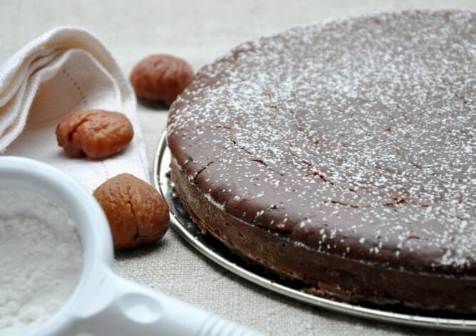 Ricetta ovviamente stagionale e tipica del Piemonte (dove dall’Ottocento in poi le usanze familiari lo han visto servire in special modo a Pasqua e, pur meno solitamente, a Natale), la torta alle castagne ha tuttavia messo radici e prodotto filoni tradizionali in numerosi angoli d’Italia, dove il marrone e le altre varietà consimili hanno avuto e hanno una presenza stabile in svariati territori e un ruolo forte sulle rispettive tavole regionali. Utilizzato in modo assai versatile (consumato in solitaria o per preparare polente, minestre, creme, pasta e puree da condimento anche per carni), il frutto dei boschi è qui primo attore di un dessert nutriente e golosissimo: tra le molteplici ricette esistenti (nel cui novero peraltro non sembra essercene una più autorevole delle altre), abbiamo scelto quella – peraltro classica – che ha come coprotagonista il cioccolato; e per confezionare la quale – come noto alle massaie navigate – occorrono anche zucchero, uova e latte.