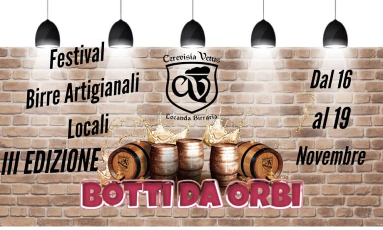 Da giovedì 16 a domenica 19 novembre si terrà la terza edizione di Botte da Orbi, il festival che la locanda birraria Cerevesia Vetus dedica ai birrifici e alle birre locali. Come di consueto il festival si svolgerà presso un tendone appositamente allestito al di fuori del Cerevesia Vetus a Ceccano nella provincia di Frosinone.