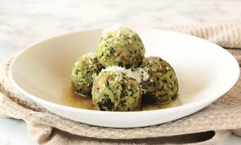 Ogni regione ha i suoi piatti di recupero, in particolare di un alimento amato e (specialmente un tempo) prezioso come il pane. Se tante volte si tratta di ricette semplici ed essenziali, altre volte nascono invece dei piccoli-grandi capolavori, come nel caso dei canederli del Trentino Alto Adige. Sfere di pane arricchite da formaggio e talvolta un salume, cotte e servite in brodo, oppure con burro fuso, o ancora con un sugo di funghi, i canederli sono un piatto ricco e goloso che richiama immediatamente l’atmosfera calda e confortevole di una baita di montagna. Per questa nostra versione abbiamo scelto di rimanere sul classico utilizzando lo speck, che conferisce il tipico aroma affumicato, e abbiamo giocato con il formaggio, utilizzando il Parmigiano Reggiano per dare corpo e sapidità, e il Pecorino fresco, per un tocco di dolcezza. Infine abbiamo osato aggiungere un tocco di colore e sapore vegetale, con due tra gli ortaggi invernali per eccellenza: cavolo nero e porro. Potrebbero sembrare complicati da realizzare, ma con le giuste dosi e qualche accortezza potrete portarli in tavola con facilità, ovviamente da gustare in compagnia di una birra che ne esalti tutte le sfumature aromatiche. Potete anche preparare qualche canederlo in più e congelarlo: all’occasione basterà tuffarli direttamente nel brodo caldo e cuocerli per 5 minuti in più.