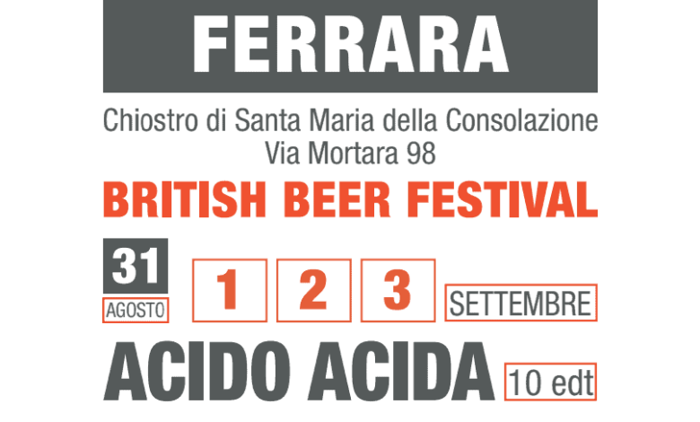 Dieci anni edizioni senza saltare un anno: a Ferrara va di nuovo in scena l’amore per le birre inglesi con il festival Acido Acida, da giovedì 31 agosto a domenica 3 settembre al chiostro di Santa Maria della Consolazione (via Mortara 98).