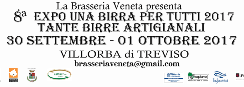 Una EXPO delle birre artigianali – con quasi 100 birre artigianali in degustazione – è la rassegna che si svolgerà dal 30 Settembre al 1° Ottobre presso la struttura del C.A.R.V. di Villorba di Treviso, il cui ricavato andrà devoluto interamente in beneficenza. All’ottava edizione della manifestazione saranno presenti i seguenti birrifici: Piccolo Birrificio Clandestino di Livorno (Toscana) – Birrificio Canediguerra (Piemonte) – Birrificio Yblon (Sicilia)– Hilltop Brewery (Lazio)– Birrificio Habemus Labibeer (Veneto) – Birra Mesh ( Veneto) – Birra Tarvisium (Veneto) – Birrificio del Doge (Veneto) e Klan Barrique,l’Opificio delle Idee di Agostino Airoli (Trentino Alto Adige) .
