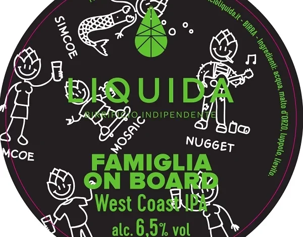 Ulteriore scalatura di colore al pantone già ben nutrito delle luppolate in gamma al marchio Liquida (Ostellato, provincia di Ferrara), la Famiglia on board si caratterizza per un’interpretazione del paradigma American IPA orientata alle versioni West Coast.