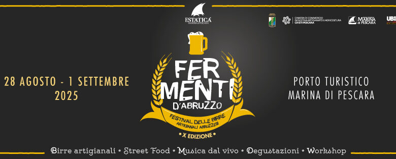 Decima edizione per Fermenti d’Abruzzo, il festival dei birrifici artigianali abruzzesi che per ben 5 giorni, da giovedì 28 agosto a lunedì 1 settembre tornerà ad animare il Porto Turistico Marina di Pescara, Lungomare Papa Giovanni XXIII.