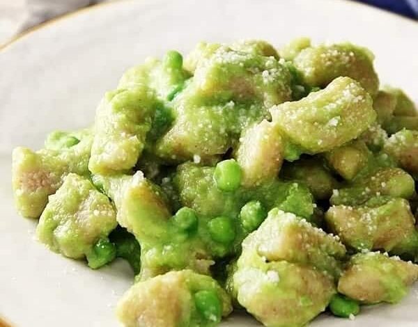 Una buona idea primaverile quella di prendere un prodotto delicato e di stagione e “pomparlo” in versione palestrata: più muscolare, più vigoroso, più gustoso. Parliamo degli gnocchi alla crema di piselli, di per sé un primo piatto non solo semplice, ma anche accessibile ad una molteplicità di palati. La preparazione prevede l’approntamento del passato di legumi cuocendoli insieme a dello scalogno imbiondito in burro (con l’aggiunta, in corso d’opera, di brodo vegetale a garantire il mantenimento dei livelli di umidità), per poi frullarli minutamente e omogeneamente, facendone appunto una crema, cui dare uno sprint finale con pepe bianco ed (eventualmente) noce moscata, più spolverate di formaggi da grattugia, come Parmigiano e Pecorino stagionato. Stazione d’arrivo: condire gli gnocchi e servire in tavola.
