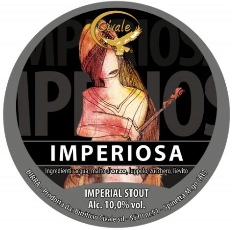 Imperiosa di nome e di fatto, l’Imperial Stout targata Civale: una tra le etichette della prima ora, alla quali il marchio piemontese (siamo a Spinetta Marengo, in provincia di Alessandria) ha affidato il proprio lancio, giovandosi del gradimento riscosso, per conseguire velocemente una posizione di diffuso apprezzamento sul mercato. Quanto a lei, la nostra dark lady nasce da una ricetta che prevede, in ammostamento, malti di assortita tipologia (Pils, Pale, Biscuit, Chocolate, CaraMunich II, Crystal, Carafa II e III); che dispone, in bollitura, il conferimento di zucchero di canna grezzo; e che disegna una luppolatura a più voci, con gettate di Magnum, Amarillo, Cascade e, Saaz.