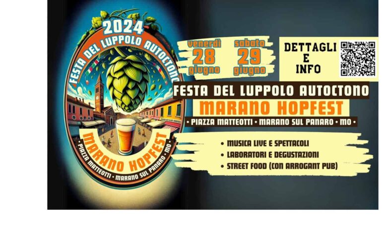 Nuova edizione per Marano Hopfest, l’appuntamento dedicato a tutti gli appassionati di birra e soprattutto di luppolo al via venerdì 28 e sabato 29 giugno in piazza Matteotti a Marano sul Panaro.