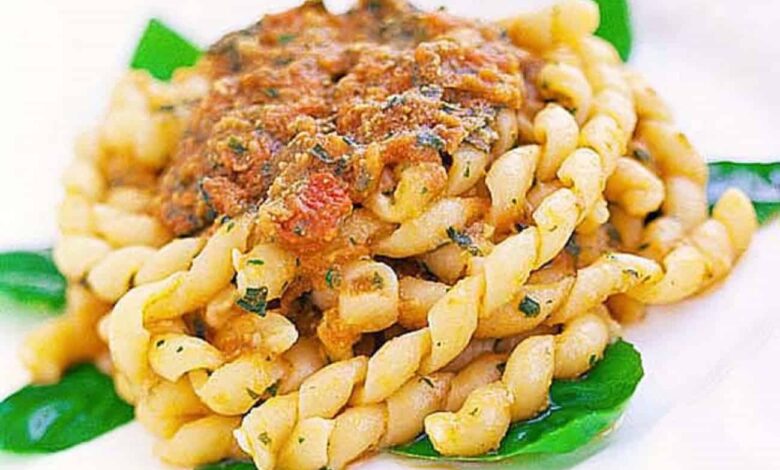 Siamo in Trinacria, per l’esattezza a Trapani. La terra sicula ci accoglie generosa mostrando con orgoglio la sua bellezza sfrontata: sole, mare, arte e buon cibo. Profumo di salsedine mentre siamo al porto a scrutare l’orizzonte il profilo delle Egadi, calore sulla pelle girando tra le chiese barocche del centro storico. È primavera ma potrebbe essere estate, secondo i parametri dello “straniero”. La temperatura è già alta ma l’appetito non accenna a diminuire, soprattutto se si è consapevoli di trovarsi in un luogo unico, terra di passaggio e di conquista: prima i Fenici, poi i Romani, gli Arabi, infine gli Aragonesi e gli Angioini che hanno lasciato un segno indelebile non solo nell’architettura, nell’arte, nella lingua ma anche nella cucina di questa città della costa occidentale siciliana. Tra i piatti più celebri della gastronomia trapanese troviamo il cous cous di pesce e verdure, figlio dei tempi della dominazione araba, ma anche prodotti Presidio Slow Food come l’aglio rosso di Nubia, il sale marino di Trapani, il pane nero di Castelvetrano, fino ad arrivare ad una pietanza tipica che qui trova i suoi natali: le busiate con il pesto alla trapanese. Un’accoppiata vincente. Le busiate (o busiati) sono un formato di pasta a base di farina di semola di grano duro a forma di sottili cilindri di pasta attorcigliati su se stessi, una sorta di maccheroni. Preparati artigianalmente con il “buso” ovvero un ferro da maglia usato per lavorare i tessuti, sono perfetti per accogliere sughi e salse come il pesto. I busiati cu l’agghia, hanno origini antichissime, risalgono ai tempi in cui le navi genovesi sulla rotta dell’estremo oriente attraccavano nel porto di Trapani, portando con sé le ricette gastronomiche appartenenti alla propria terra. Queste furono subito d’ispirazione per i marinai siciliani, che decisero di rielaborare il pesto ligure – in particolare ancor prima, l’agliata ligure a base di aglio e noci – aggiungendo ingredienti locali, come le mandorle e i pomodori freschi. È tempo di sedersi a tavola e di ordinarne un bel piatto. Oppure di preparalo a casa: è semplicissimo.