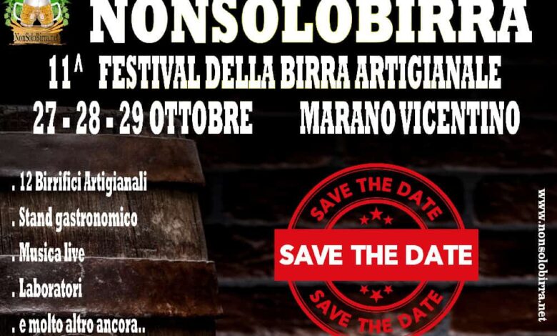 Dal 27 al 29 ottobre si terrà l’undicesima edizione del Nonsolobirra Festival, il festival organizzato dal portale nonsolobirra.net. Confermata la location di Marano Vicentino nella zona degli Impianti Sportivi di viale Europa.