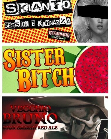Infine, una raffica di debuttanti firmate Toccalmatto e figlie del nuovo impianto. La prima è la Skianto: Session e Carnazza, una Session Ipa con varietà di luppolo innovative, il tedesco Huell Melon e, dagli Usa, l’Equinox già citato per la Duvel Tripel Hop 2015. Una low alcohol – tanto aroma, grande beva e finale bitter – dedicata all’epopea degli Skiantos e al loro leader, Roberto Freak Antoni. La seconda, Sister Bitch, è l’ultima nata nella serie, appunto, delle Sisters, linea di birre di frumento alla frutta: elemento che, nella fattispecie, è rappresentato dall’anguria, per un profilo tipicamente estivo. La terza risponde al nome di Vecchio Bruno e si qualifica come Sour Emilia Red Ale: fonti d’ispirazione, le Vlaams Rood Bruin (com’è facile capire) e l’aceto balsamico; il resto è una lunga gestazione che parte dalla saba, il tradizionale mosto cotto, e procede attraverso una paziente permanenza in botte, a sviluppare la sua spiccata acidità acetica.
