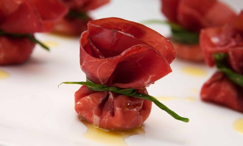 Del piatto in questione suggeriamo un’esecuzione precisa. Quella che consiste nell’avvolgere in fette di Bresaola tocchetti di Parmigiano (è il tandem canonico), senza peraltro escludere convocazioni più fantasiose – ad esempio del Monte Veronese o del Bitto – per poi spennellare con gocce d’Extravergine, ma rinunciando a qualsiasi intervento con limone. Motivo? Ovvio: tenere basso il livello di citricità, conditio sine qua non per non essere costretti ad abbinamenti da collocare entro perimetri stilistici obbligati. Così condito, invece, l’ensemble carneo-caseario avrà anzitutto buona struttura al dente (le proteine), buon contenuto in grassi (il formaggio e l’olio), una discreta sapidità e un tenore d’acidità invece più gestibile.