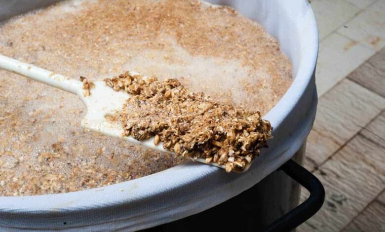 Se dobbiamo realizzare una birra il cui grado alcolico desiderato è intorno al 9° alc. o superiore, ci sarà bisogno di molto malto, a patto sempre che i tini di ammostamento e filtrazione siano in grado di contenere sia questo volume che quello di acqua necessaria (sempre intorno al triplo della quantità di malti o poco meno). Parlando di numeri, in una cotta casalinga di classici 23 L si andrebbe facilmente intorno ai 9 kg di malti, ai 25-27 l d’acqua e quindi ad una capacità di 33-35 L circa. Molto probabilmente, con efficienze classiche che vanno attorno al 75%, non si riuscirebbe neppure a giungere allo scopo in termini di litri e densità finali. Per questo motivo si può optare per uno sparge molto ridotto per non abbassare la densità del mosto. Ma così facendo per andare incontro al volume di birra desiderato si dovrebbe usare più malto e questo loop decisionale porterebbe ad aumentare ancora acqua e così via, con il rischio reale di mollare le pentole in garage per andare a bere al pub senza faticare. L’alternativa sarebbe quella di procedere con un “no sparge”, a cui seguirebbero due effetti: densità facilmente raggiunta ma efficienza ridottissima (anche 55%), con conseguente grande quantità di zuccheri ancora intrappolata nelle trebbie ma la cui estrazione diminuirebbe la densità, pur risollevando l’efficienza. Ha senso, quindi, andare a fare sparge su quelle trebbie per ottenere altro mosto ma usarlo in modo diverso.