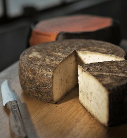 Proseguendo la nostra “caccia al cacio birrario” quanto mai doverosa una tappa in Abruzzo da Jurij Ferri, anima di Almond ‘22, altro pioniere del genere contando che le prime sperimentazioni sono partite nove anni fa con Giovanni Del Giudice del caseificio Rivisondoli, in provincia de l’Aquila. Il Kerres Feronia è un formaggio vaccino, stagionato in piccole botti di legno tagliate a metà al cui interno le forme sono lasciate per tre mesi ricoperte dalle trebbie ancora cariche di mosto provenienti dal birrificio. Un ulteriore riposo in ambiente umido consegna un prodotto di crosta solida, morbido e molto profumato. Il Kerres Fatui invece, anch’esso vaccino, è un semi-stagionato di pezzatura più piccola che viene affinato sotto malti macinati selezionati da Jurij.