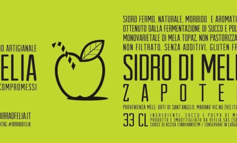L’approccio al sidro del birrificio vicentino Ofelia nasce da lontano, da un viaggio in Galles e da assaggi folgoranti di questa bevanda che in Italia ancora non è possibile trovare nelle sue migliori interpretazioni. Il frutto di partenza arriva dall’azienda agricola biologica Orti di Sant’Angelo (Marano vicentino) che viene utilizzato per dare vita a due differenti etichette. Zapotec è un sidro ottenuto dalla fermentazione di succo e polpa di monovarietale di mela Topaz appassita per 40 giorni così da concentrare gli zuccheri. Ovviamente non pastorizzato, non filtrato, senza additivi, e gluten free.