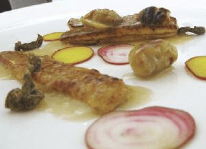 Quale birra versare in padella? Aurora consiglia caldamente un lambic d’autore come il Grand Cru Bruocsella Cantillon, per amplificare la vivacità di una salsa che incontrerà la dolcezza della castagna, arricchendola con note sicuramente non banali. Certo la scelta di una birra alla castagna, magari non eccessivamente morbida, è dietro l’angolo. Ma chi non ama le scelte facili ed è deciso a sperimentare giocando con i contrasti, potrebbe optare per qualche American IPA, senza spingere troppo in alto l’asticella dell’amaro. Un secondo a base di pesce pensato per l’autunno, molto completo sul fronte gustativo, richiede una birra che abbia il compito di ripulire senza scardinare troppo l’equilibrio realizzato in cucina. Proviamo allora con una tradizionale Blond belga o con una Pale Ale cercando interpretazioni “educate” che associno freschezza aromatica ad un rapporto malto-luppolo all’insegna dell’armonia.