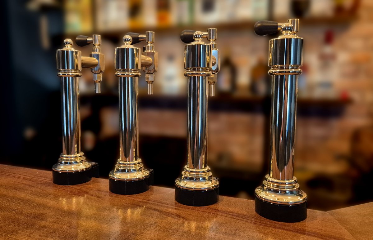 Verso la metà degli anni ’70, quando la birra in cask subì un grave declino, un tipo di rubinetto a pressione normalmente utilizzato per le birre in fusto, il Cornelius, iniziò ad essere utilizzato insieme all’erogazione della pressione dell’aria per la birra in cask. Quando il CAMRA pubblicò la sua prima “Edimburgh Real Ale Guide”, nel 1975, solo 18 pub vendevano birra in cask (rispetto al minimo storico di 14 di pochi mesi prima). Una piccola minoranza di pub scozzesi, che non era passato all’erogazione dell’aria compressa decenni prima, utilizzava le handpumps per servire la birra Belhaven, ma tutti gli altri locali nella guida utilizzavano l’aria compressa e le Tall Fonts. Negli anni successivi, quando la birra in cask iniziò a diventare più ampiamente disponibile, il birrificio Maclay’s di Alloa inizio a fornire solitamente le Tall Fonts della McGlashan, mentre la ditta Aitken di Edimburgo, che aveva prodotto il proprio modello di Tall Font negli anni ’50 e ’60 e che ha continuato a effettuare assistenza e riparazioni, lanciò un nuovo modello, basato sul design della colonna McGlashan, ma con la leva montata in alto, anziché alla base. Questo nuovo rubinetto diventò molto popolare negli anni ’80 e all’inizio degli anni ’90 ed è il modello che ancora oggi potrete trovare nei pochissimi pub che utilizzano ancora le Tall Fonts. Nel frattempo, il compressore elettrico stava gradualmente sostituendo gli ultimi motori idraulici, alcuni dei quali erano ancora in uso alla fine degli anni ’70.