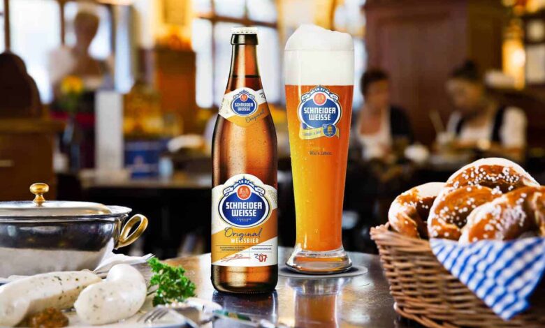 Etichettata come Weizen Hell o come Tap 1 Meine Blonde Weisse, si tratta comunque di lei, la matriarca di casa Schneider, una tra le etichette di riferimento assoluto nel perimetro delle Hefeweizen. Fedele al disciplinare di genere in tutti i suoi aspetti, dalla miscela secca (malti d’orzo e frumento) alla luppolatura (Hallertauer Tradition e Saphir le varietà in ricetta), dal lievito (un ceppo selezionato della casa) alla fermentazione (aperta la primaria, seguita da condizionamento in bottiglia), la birra si presenta in mescita esibendo il suo bel colore dorato carico, diffusamente velato e guarnito dalla canonica cascata di schiuma bianca.
